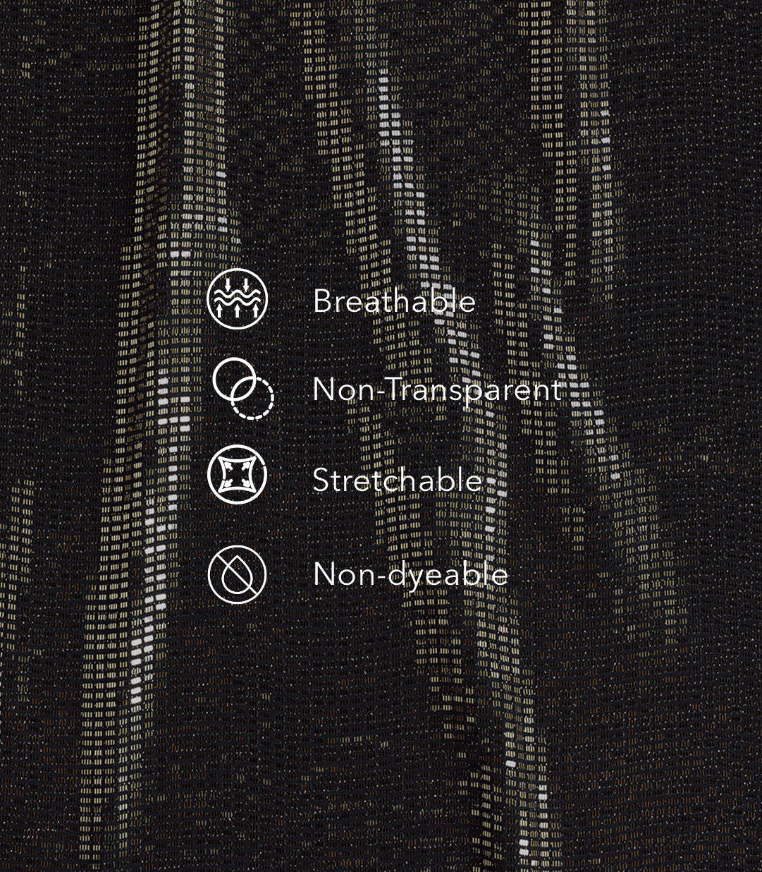 - Composition: Polyester 93%, Elastane 5%, Metallized fibre 2%